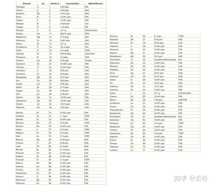 那么商家说,喜马拉雅粉盐有数十种矿物质元素,天然健康,这是对的吗? 这种就属于典型的真话说一半,故意忽略下半句。 前面说了,喜马拉雅粉盐之所以呈现粉色,其实是因为有含铁杂质。 在六千多万年的沉积中,杂质自然不止这一种。 有学者就系统性分析过喜马拉雅粉盐的成分,结果呢。 三页,一堆。 跟吃了个迷你元素周期表没区别: |