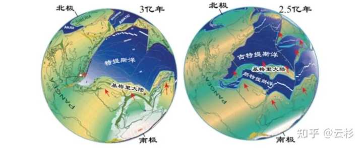 再或者,被加工成「粗盐」,拿去售卖。 也就是现在卖到天价的喜马拉雅粉盐,或者说玫瑰盐。 所以这东西怎么来的?又是怎么变粉的? 答案是,大海。 两亿多年前的二叠纪,现今的喜马拉雅山脉、青藏高原一带曾是大海。 这片海洋名为特提斯洋,连接了现在的大西洋与太平洋: |