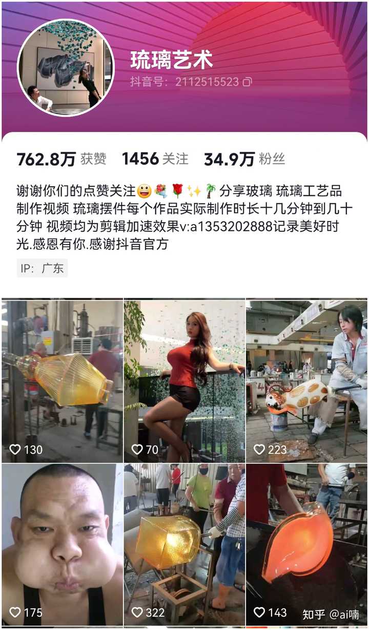 这件事感觉挺讽刺的。张师傅他的团队本身是在抖音上有号的,叫琉璃艺术: |