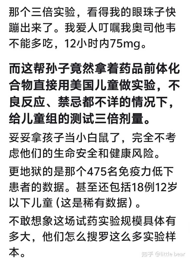 昨天白天刚看到知乎一篇文章,关于奥司他韦,今天牢A就提到了。那篇文章昨天已经搜不到了,只有一点截图。 我还在想,1481名儿童哪找来的?1岁以下婴儿3死2,家长不闹吗? |