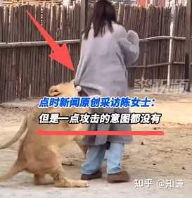 那雪豹体型比这两只幼狮也大不了多少。而且,这次和女子玩耍的小狮子,是两只。看视频中女子瘦小的样子,估计只要狮子们认真起来,她会比较容易被“制服”。 还说没有一点攻击意图?这其中一只狮子的牙齿都挂在大衣上了好吧? |
