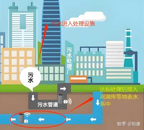 进入污水处理厂后,经过过滤、沉淀等物理处理环节及厌氧、缺氧、好氧等生物处理流程,污水中的悬浮物、COD(化学需氧量)、BOD(生化需氧量)、氨氮、总磷等指标进一步降低,达到排放标准后,排入江河湖海等地表水体。 PS:污水处理设施的排放口一般都在城市的下游。 |