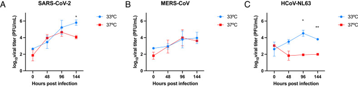 寒冷暴露会损害细胞外囊泡群所介导的鼻腔抗病毒免疫反应 换句话说,鼻腔的“第一道防线”在低温环境下确实会变弱。 另一项发表于《PNAS》的研究也显示,不同人类冠状病毒在33℃与37℃下的复制能力存在差异[5]。33℃接近上呼吸道温度,而37℃接近核心体温。部分季节性冠状病毒在较低温度下复制更活跃。 |