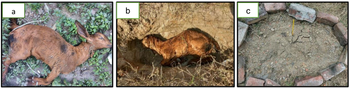 但是吧,土地松软也意味着透水透气更透味, 至于会发生什么,刚好有人在印度将一只死羊埋地里9英寸处(22.8cm左右)[1], 山羊为3月龄幼年山羊,体重8.6kg,从头到尾长67.31cm。 掩埋时体温27°C,属新鲜尸体,无腐败现象。 掩埋土壤为壤土,种植的植被有桑树、茄子、木瓜和芒果,年平均降水量75.4cm, 年平均最高/最低温度为31.30°C/17.90°C。 具体记录的温度湿度以及时间和观察结果见下表, |