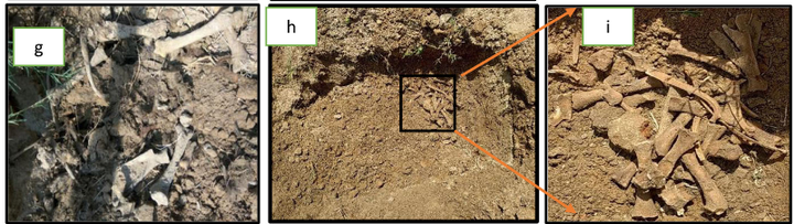 这期间观测到的所有昆虫成虫及大小亮相。 第五周及往后 此时尸体进入干化期,软组织彻底分解,靠近墓穴仅能感知到极淡的腐殖质味,与普通腐土气味几乎无异。 之后基本尘归尘土,剩下一些不好分解的皮毛枯骨证明这里确实曾经有一个尸体。 |