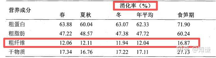 大熊猫的主要食物——竹子中的主要营养成 这说明,一旦其消化道过短、消化纤维素的酶和细菌缺乏,就会导致其对纤维素的消化率低得感人。 大家再看看这个↓,大熊猫对竹类中的粗纤维消化率只有 12% 左右[6],但吃竹笋会高一些,因为竹笋比较嫩,纤维稍微好消化那么一丢丢。 |