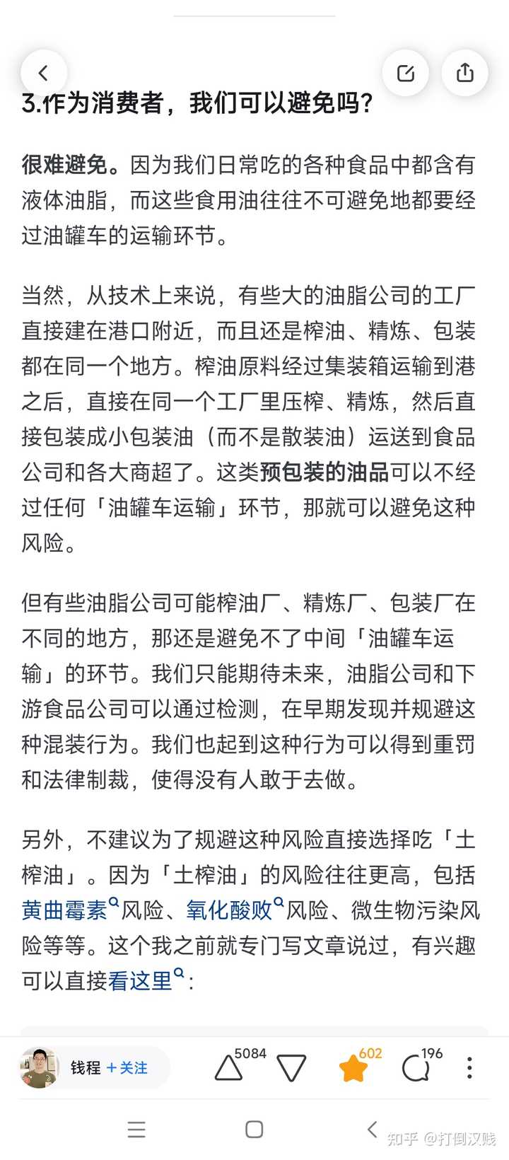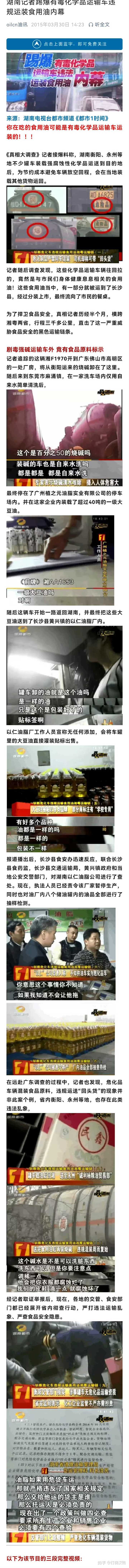 就如同现在渔猎奇哥曝光的红色地下水灌溉小麦,小麦直接销往市场让外地人吃。而且2016年就曝光了地下水成红色,没有改,这个运油车你认为改了吗?十年后会不会再曝光一次?2015年就曝光过油罐车混用,没用 也就是大豆油,包括要用大豆油的食品,比如各种饭店,面馆,火锅底料,蛋糕店,面包店,饼干店,方便面店全部不能吃。因为这些工厂不会买那种瓶装油,因为用的多,他们直接买整车油,从油厂出发用运油车直接运到他们食品工厂。 只有一种油是安全的,就是在沿海城市直接出厂的大豆油,海外大豆运到沿海城市,直接在沿海工厂变成瓶装油出售,不会经过运油车,但是这有油品牌通常会有全国分公司,他们不把大豆运到分公司,而且把大豆榨油,初步加工,然后用运油车运到分公司,再加工一下罐装成瓶出售。也就是如果生产厂家是沿海品牌的内地分公司的油千万不要买。 还有小品牌油不要买,他们没有去买大豆,他会买大品牌油再加工成瓶出售 当然沿海城市的饭店,蛋糕店,面包店,饼干店,火锅店,方便面店也不要吃,因为他们也通过运油车运油给他们。 |