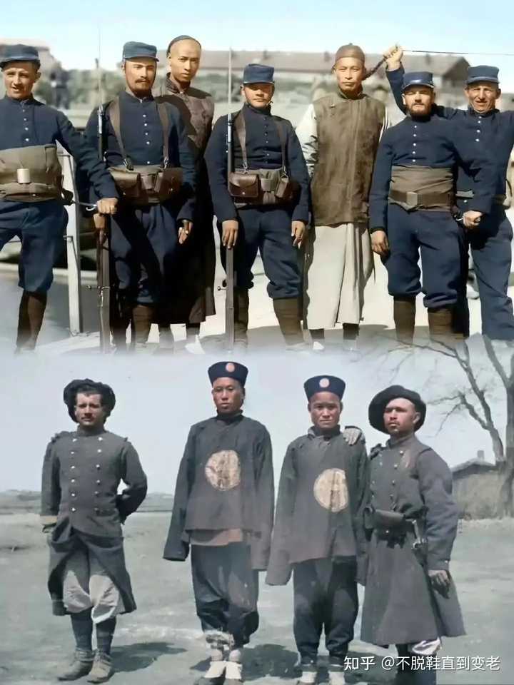 有张照片,普通老百姓和八国联军的合影。清末时期吃不饱饭的老百姓也比八国联军的士兵高大,所以西方人比东方人瘦小是怎么得来的? 补一张照片: |