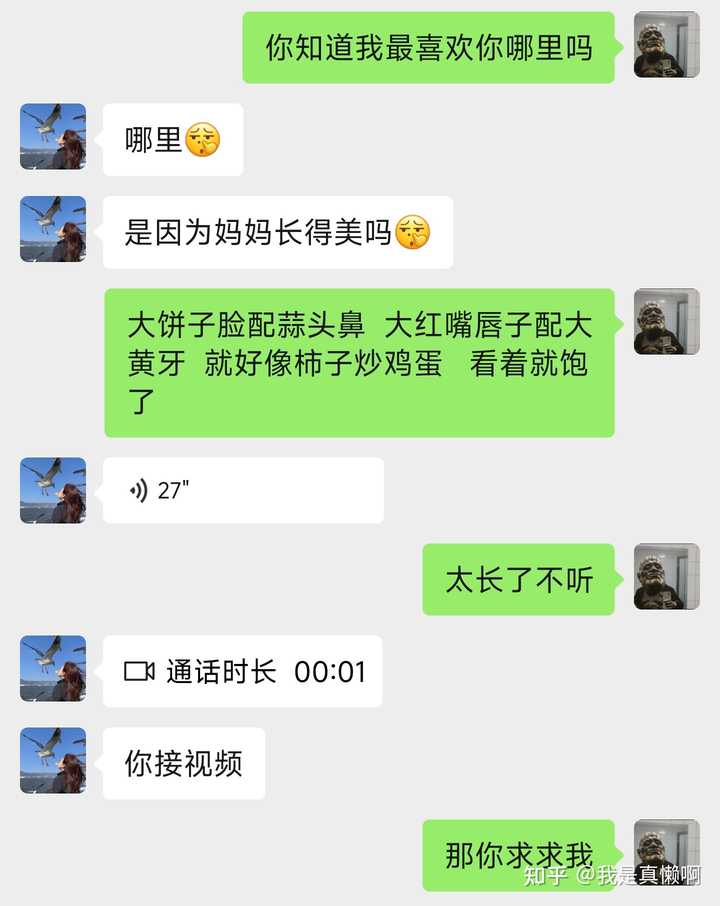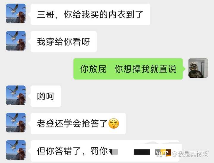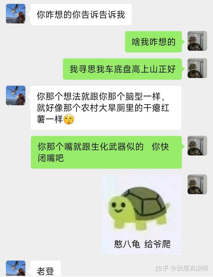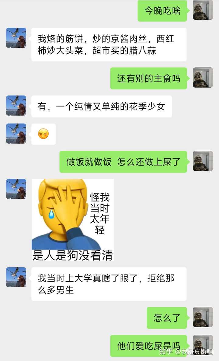 1.我说几句题外话,我俩就是我俩,代表不了整个东北的情侣和夫妻,有些人上纲上线拿这个开地图炮真没必要。觉得低俗,点举报都行,没必要拿这个开地图炮。 2.她吧,我给大伙形容一下她是一个什么样的姑娘:披肩长发,大眼睛,皮肤白皙,个子不高,不胖,身材匀称,长相上,可能是情人眼里出西施,她在我眼里是神,洗衣做饭也都是她做,说她一声贤惠,她也确实称得上。 她是那种第一眼看上去是那种文静又害羞的乖乖女,我俩刚认识那会她确实是这样的一个小姑娘,但其实你要是跟她熟悉了,她其实挺开朗的。后来吧,可能是熟悉了,也可能是受我熏陶了,我俩聊天风格就一直是这样。 她其实很胆小,通过讲鬼故事那个截图就能看出来,和同事去外边吃饭,老板多收了她两块钱,她都不敢要回来。 她也就跟我这样说话,有句话咋说来着,被爱的人有恃无恐,哈哈哈。 屎尿屁也只是我俩之间这么说,在外人和朋友面前我俩还是很正常的。 3.我和她是同学,我俩之间是她先追我的,我是个情感懦夫,她比我勇敢,率先迈出了第一步,如果那个冬天的晚上她没有迈出这一步,可能我俩也就不了了之了。 4.她那些词汇量,其实很多都是跟我学的,我玩男厕所,她不玩,她也不玩女厕所,她连玩游戏都不玩,第一次上网吧还是我带她去的。她平常就是刷刷抖音,可能刷多了也会点了。 很多人说她对我说话的口气太难听了,其实不是这样的,按我们东北话讲,我俩基本上就是互相埋汰(互相开玩笑),也不仅仅是屎尿屁,其实我俩的聊天记录有很多没有屎尿屁的,只不过我觉得没意思就没截。 就像这种: |