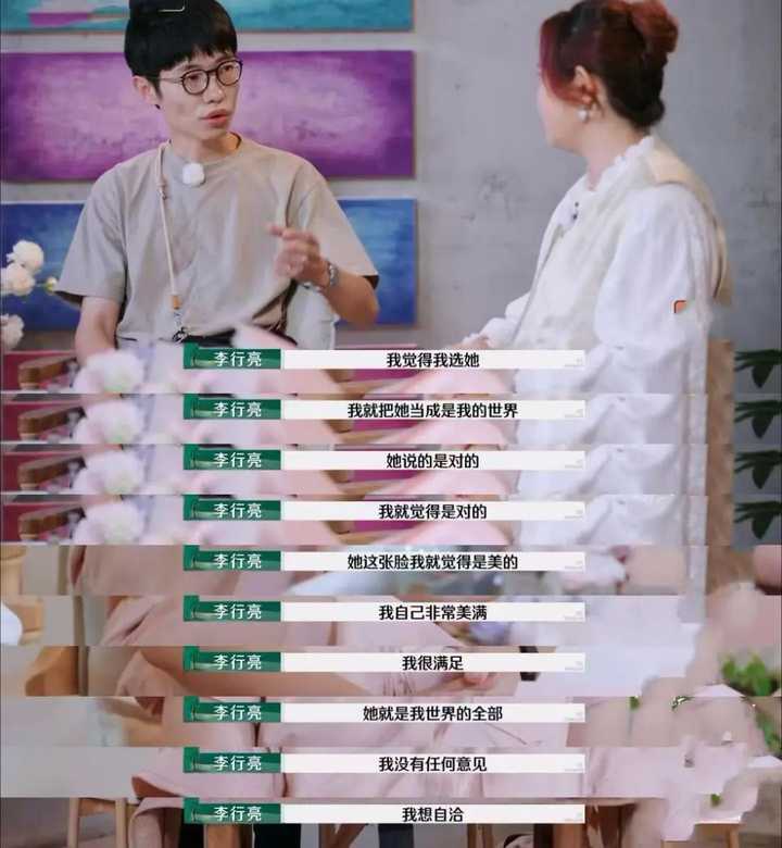 小编最近看到一个粉丝的讲述,她的前夫也是李行亮一样的人,这种人没有太多的共情心理,所有的关心都是形式化的,如锦旗、青团,形式主义的东西有,但是没走心的;也不关心你的任何细节,比如麦琳多次说朋友老公给买包的事,他没有第一时间给出肯定;你不能和他交心,内心最优先、其次是外人、最后才是你,这对应李行亮担心影响画师的心情,却没有安慰麦琳,还比如要麦琳给自己50%、给孩子30%、给自己20%关注度。 |
