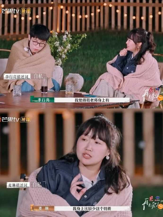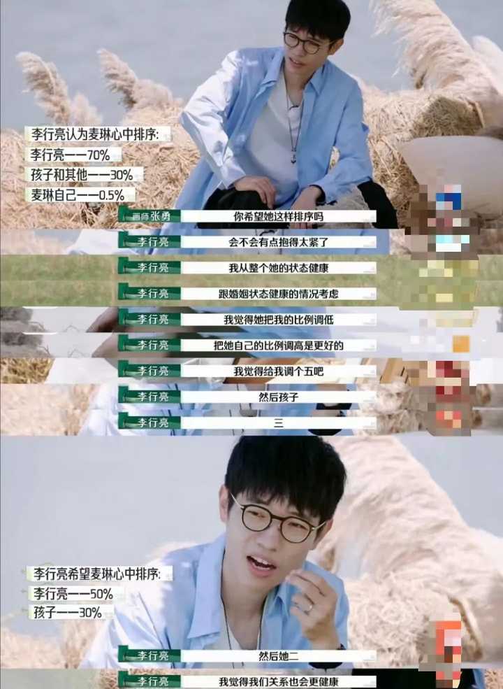 如果说麦琳在第二期开始暴露本性,李行亮的问题在第八期则彻底暴露。 当杨子和刘一手说麦琳任性、情绪化、不给老公面子时,李行亮当面一言不发,背地里却说二人“脑子被驴踢了”; |