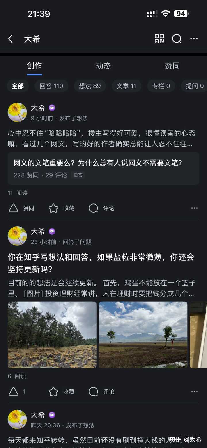 虽然到现在为止,还没有在自媒体上挣到钱,但在平台上更大的乐趣在于“未知”。打开文章看数据,有时阅读率只有个位数,有时阅读率又会破百,数据令我上窜下跳,自己经常在“不行”和“真棒”之间反复横跳。但无论如何,写作的每一天都让我觉得无比踏实,因为我没有站在原地焦虑,而是选择了低头走路。 能走到哪里我不知道,人过半百,也已经越来越不愿意计划,因为到头来你会发现,任何看似完美的计划,在“无常”面前都会由计划改成变化。 所以我不想计划明天,只想把今天过好,先把知乎问答按时上传再说。 |