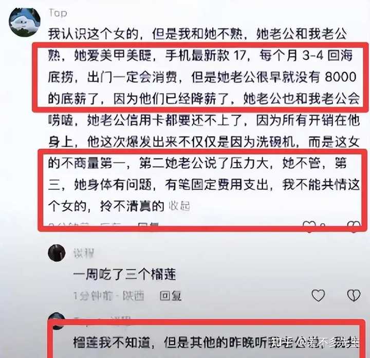关键点: 外债20W,丈夫月入不到8000,租的房子,2个孩子, 广东这天气怕水凉,买之前不跟老公商量,甚至跟房东说了也不跟自己老公说, 讲道理,嫌水凉,几块钱买个加绒的皮手套也能解决, 电饭煲盛饭完,倒点水温那,到时候洗也可以, 实在不行百来块装个小厨宝, 她偏偏去选个洗碗机...... 而且从视频里看,家里非常脏乱差,厨房里面都没地方落脚, 买个洗碗机没地方安装,只能放在水槽旁边。 另外,这男的长期出差,孩子在学校吃饭。 每天要洗几个碗? 这些条件一看,网上的这个传言,竟然显得那么可信: |