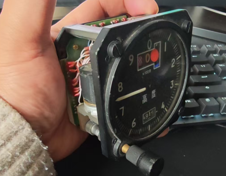 这是一个歼-8战斗机用的高度表,90年代的产品,真空鼓气压计部分已经独立分开,传到它这里已经是数字信号了。肉眼可见精度已经不可同日而语,数字信号是在真空鼓那边测的电容值,已经不怎么依赖机械齿轮了。 |
