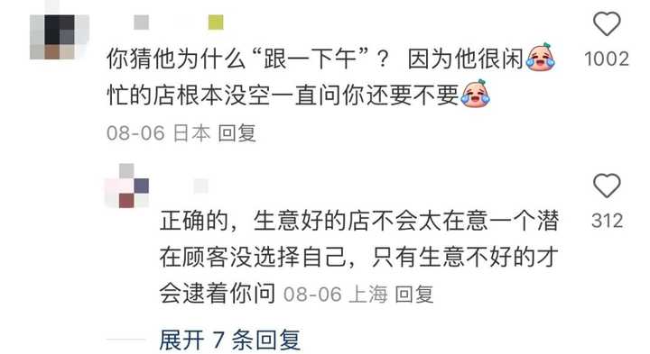 “你猜他为什么跟一下午?因为他很闲。忙的店根本没空一直问你还要不要。” 也是,就这样高高在上的服务态度、动不动就把顾客挂朋友圈的离谱举动,生意会好就奇怪了。 02 你会发现,现在一些卖东西的商家或店员,是越来越喜欢PUA顾客了,不买就要被他们嘲笑成“穷鬼”。 比如,有人带妈妈去买衣服,妈妈在试毛衣的时候,他口渴喝了一杯店里的速溶咖啡。 |