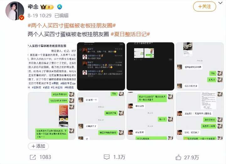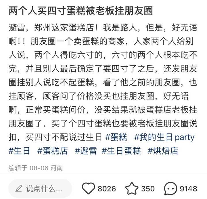 01 前几天,热搜上挂着这样一个词条:“两个人买四寸蛋糕被老板挂朋友圈”。 |