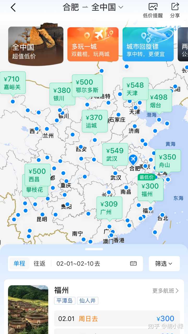 这是一张中转联程票,只是中转时间有8个月 这是国航澳航联程活动机票,两张机票算一程,共卖1038元,第一程端午节最后一天澳门回杭州,第二程春节正假期飞乌鲁木齐。 买机票是信息差的,策略得当的话一年能省几万,机票没有大家想的那么贵。加上航司还有各种随心飞,一季可无限次乘坐。【别说我们有钱人啦,哪个富二代坐经济舱啊,买票还纠结价格的都是我等打工人啊】 查询特价票办法: 1、一个小程序,就叫“飞飞” 2、某程-机票-特价机票,选好时间即可,就能看到你想去的城市及附近,哪个航班最便宜。 比如春节前想从合肥及附近出去旅游下,可以看下去哪玩性价比高,查出来的结果: |