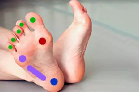 基本科普就到这里,该怎么做? ▲调整站姿 将身体重心落在图中红色、紫色、蓝色3个点上,同时脚趾不要有翘起,要紧贴地面。 如果这样做有困难,可以参考岛国综艺中的方法,用胶带辅助一下。(胶带仅限于站姿时脚趾翘起的同学) |