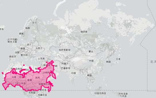 是不是感觉中国与俄罗斯的国土大小差距没有那么悬殊了? 反过来想一想,如果把中国拉到俄罗斯的位置,在地图上会是什么样呢: |