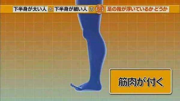「岛国专家」说,90%的粗腿都有脚趾悬空的情况。 为什么会这样?「岛国专家」让大家试着这样做:抬高脚趾走路。 可以感到,这样腿部肌肉更费力。(这不废话嘛= =) |