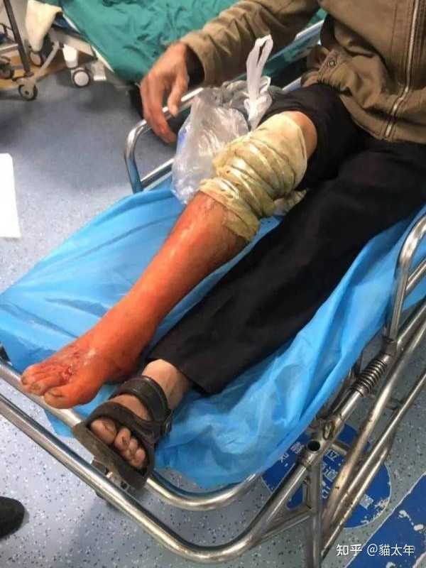 这是去年某地一个老人在家中意外被外面闯入的蛇咬伤。 脚的大图就不放了,单看这肿胀破皮等症状,就知道受伤的老人经受了非常大的痛苦。 |