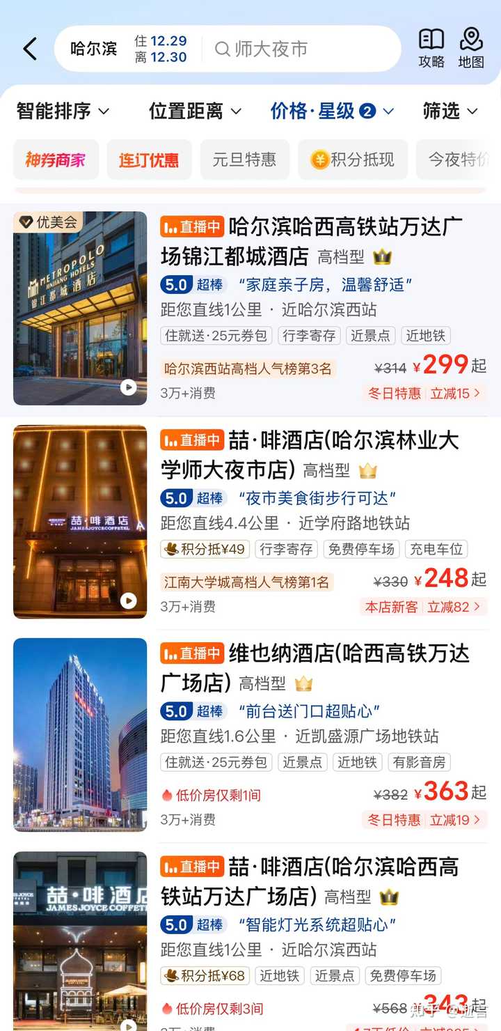有没有懂的本地人科普一下,评论里好多哈尔滨人说这个时候哈尔滨五百以下的酒店压根不能住,这是我在美团选择四星及五星的筛选结果,无论怎么说三百多这时候也算不上很廉价了吧,北京上海去了很多次我也不敢说五百以下的酒店没法住,住三百多的酒店为啥直接给我贴穷游的标签了,我也在东北,怎么不知道东北的经济这么好了? |