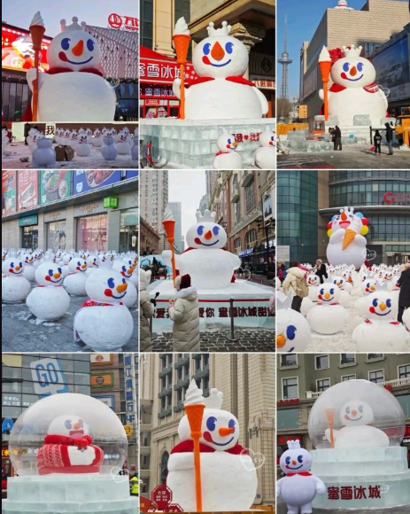 蜜雪冰城这两年在哈尔滨就开始玩文旅了,大冬天的搞了一堆雪王雪人大军。 |