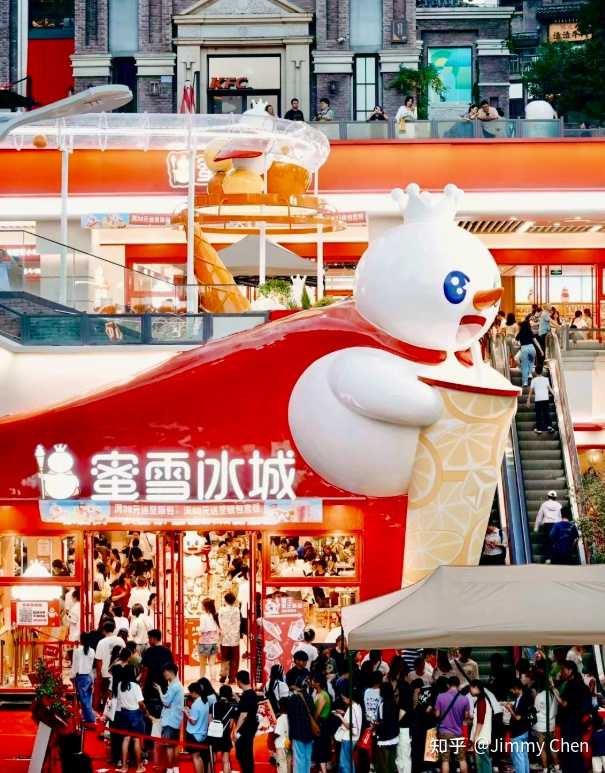 我劝大家不要小看蜜雪冰城的影响力 这是在长沙五一广场,蜜雪冰城新开的全国最大旗舰店,当时整个五一广场没有哪家店的流量比这多的。 要知道长沙可是茶颜悦色的主场,蜜雪冰城敢到这边来开,没把握他敢来吗? 在自家主场开主题乐园怎么说也比去同行主场开最大旗舰店简单吧 |
