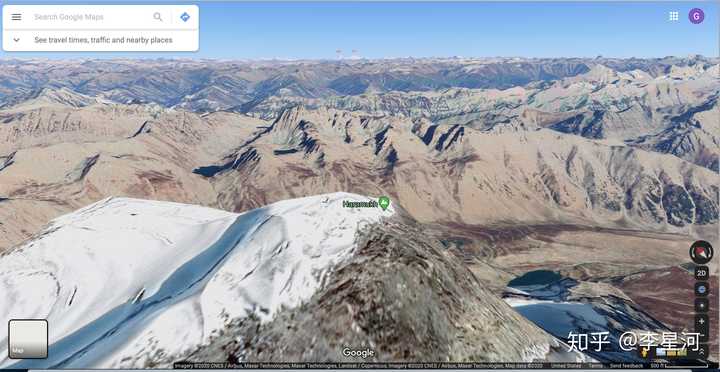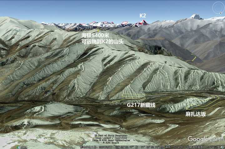 地处偏远,难以发现:k2知名度不高,首先原因是地处偏远,周围渺无人烟,也不在交通线附近,用google地图来看,k2深藏在喀喇昆仑高原群山之中,无论从哪个方向都难以接近。且被重重山峦所阻碍,远处低海拔地区完全无法看到,攀登k2的队伍,甚至要走上半个月以上,在最后已经极度接近k2的距离上,才能够从冰川转角看到它。 网上有一种说法,说在G217新藏线的麻扎达坂,天气好的时候可以看到k2。我曾经在google地球上全程模拟过,发现如果是在路上或者路边,是完全不可能的。最有希望的是在麻扎达坂的最高处,爬上西南侧相对高度400米,海拔5400米左右的山头,刚刚好可以看到k2的山尖,直线距离80多公里。不过既然“麻扎”达坂的意思是“死人”,估计一般情况下没有人能够有能力在5000米的海拔上再爬400米的山吧。 |