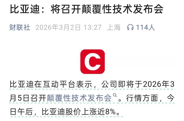 比亚迪官宣了,3月5号会发布颠覆性技术,真的有好戏看了! |