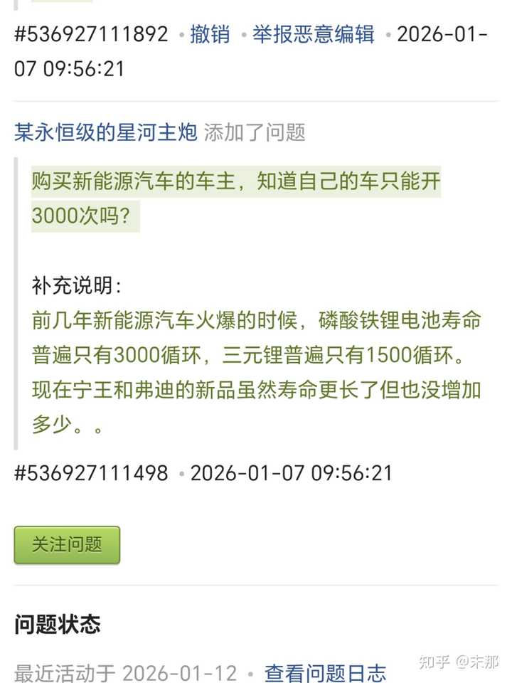 你好,我还真是磷酸铁锂电池 买车到现在4月到1月,9个月跑了13000公里 大约每天40多公里 50公里的样子 平均每周会充一次电但是不是循环,我就当循环吧?我车满电epa是440公里,实际上按照wltp开法城区续航在520左右,但是这个就不管了,就当真的只能440 也就是说我的车每周一次深度充放循环 那么循环寿命转换成时间大约是——3000/365*7 = 57年 而按照我的开法,一年两万公里。。。我觉得能讨论这个问题的至少也得是那种大马力油车一年开个两万公里的,而不是一群一年两箱油选手 你但凡说一句日历寿命导致的电池衰减我都不跟你计较了…… 但是不好意思,磷酸铁锂日历寿命还真有10多年,喜欢用拿自己当油烟过滤器的朋友一口一个油车能开十几年,不如先问问自己的车有没有开到十五六年? 所以事实证明 电池衰减焦虑和续航焦虑,大概率都是完全没接触过新能源的燃油车车主 这些燃油车车主基本盘大概率也是开个卡罗拉轩逸一年两箱油的家伙 当然油车吹最幽默的地方还是双标,开了三五年的油车发动机积碳效率下降,各种机油问题,变速箱效率降低,但是因为机械结构这种事情是一点一点发生的所以自己根本意识不到只有重新换一辆新车才能感受到差异,还能自我感觉良好觉得“开了好多年的油车正值壮年”,实际上就跟四五十岁的亚健康白领一样 但是明明自己感觉不出车辆老化,却对电车续航降低个10%就大呼“电车可靠性太差” 仿佛油车都是轩逸的可靠性,迈巴赫的隔音,m3的操控,充电器的动力一样,建议点开谷歌看看还没新能源时代修不好的美系车,烧机油的德系车,和全国丰田专修 |