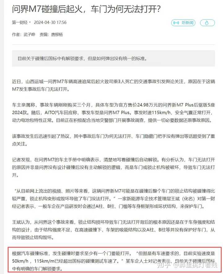 问界115km碰撞打不开车门,第一财经:远超国标要求的50km时速解锁要求,遥遥领先! 小米160km碰撞打不开车门,第一财经:小米应主动召回37万辆SU7。 自己品吧,正常人都看得懂。 |