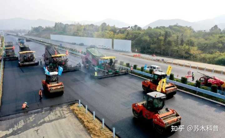 还有一点,为了避免气温影响水泥热胀冷缩,水泥铺设的高速公路,每隔一定的距离都会留有几毫米的伸缩缝。 汽车在高速状态下经过这些伸缩缝,时间久了,伸缩缝部位的水泥一旦老化、脱落,就会威胁到汽车的行驶安全。 沥青路面施工工期短 用沥青修筑路面施工速度快,工期短。前面一台摊铺机铺料,后面跟着一台或者数台压路机碾压,工作效率非常高。 而且,已经摊铺好的沥青经过碾压后,经过一定时间的自然降温,各种工程车辆就可以在上面行驶,加快了修建高速公路的工程进度。 |