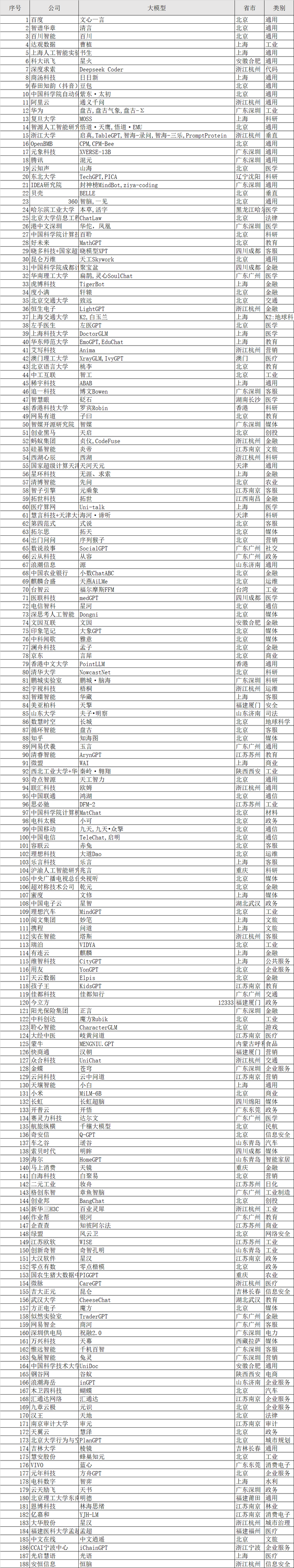 图1 全球大模型发布时间节点 而我国,依然在这场革命中涌现出了强大的科技与智慧的力量。 中国本土大型模型的崛起进程始于2017年,当时中国的科研机构与企业积极投身深度学习与自然语言处理领域,默默耕耘,蓬勃至今。据不完全统计,目前国内已有AI大模型168家(数据来源:http://github.com/wgwang/LLMs-In-China),比题主提到时,足足翻了一倍。 |