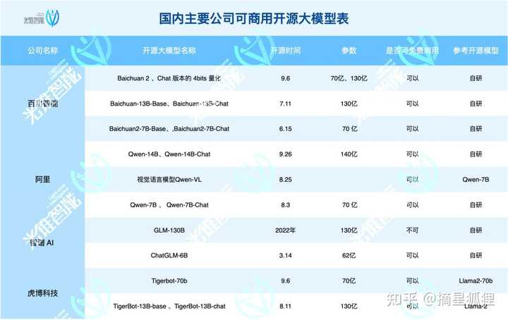 图4 国内主要公司可商用大模型表(图片来源:36Kr) 另一类大型模型数量较多,这些大模型通常以套壳Llama或其他类似模型为基础,在特定数据集上进行深度的个性化定制和优化。特点在于它们专注于特定市场细分领域,通过深度定制和优化以提升性能。当然,从论文角度看,某些模型通过特殊方法能够接近或甚至超越Chat GPT,在特定领域的任务上表现出色。 在8月推出的Llama 2 中可以看到,模型系列包含 70 亿、130 亿和 700 亿三种参数变体。此外还训练了 340 亿参数变体,相比于 Llama 1的训练数据多了40%,因此,基于Llama2的开源模型进行数据收集调用及调试的“再生长大模型”,也并非没有可能实现弯道超车。 |