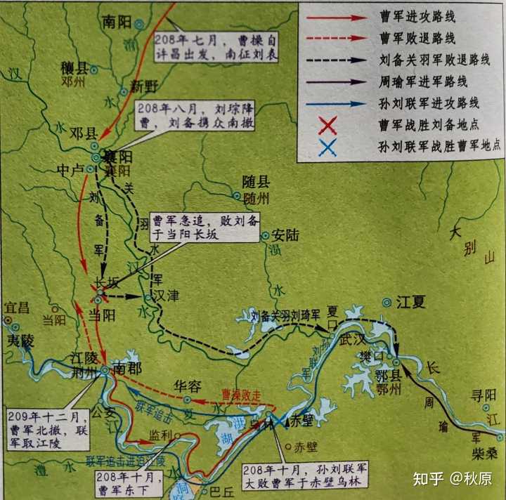 比如说,在解释“赤壁之战”的地图上,除了标出孙吴/曹双方的行军路线,还有战场地区的数条江河。其中有一条夏水,他与汉江相汇,流入长江。但请注意夏水的源头,是标在江陵/南郡这一带,这时为啥呢?? |