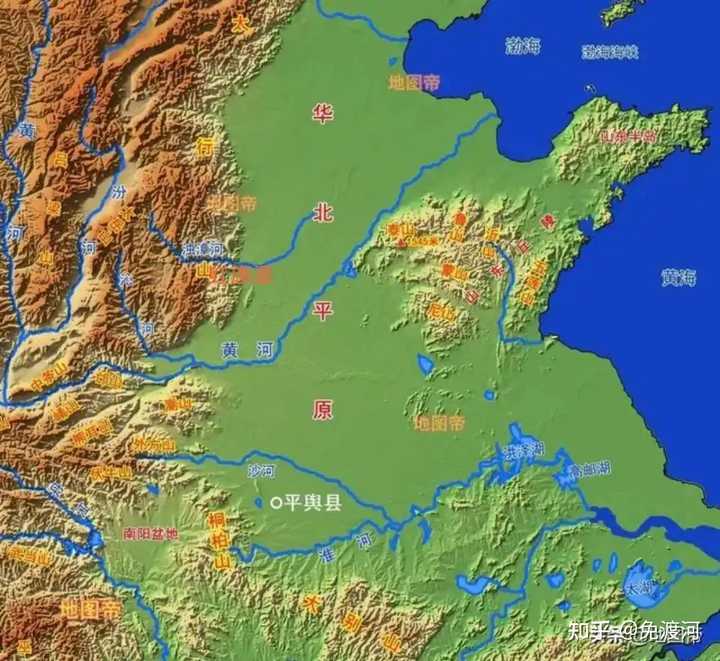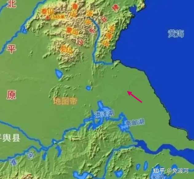黄河下游地形图 而且你有注意洪泽湖以东微微的地形起伏吗? |