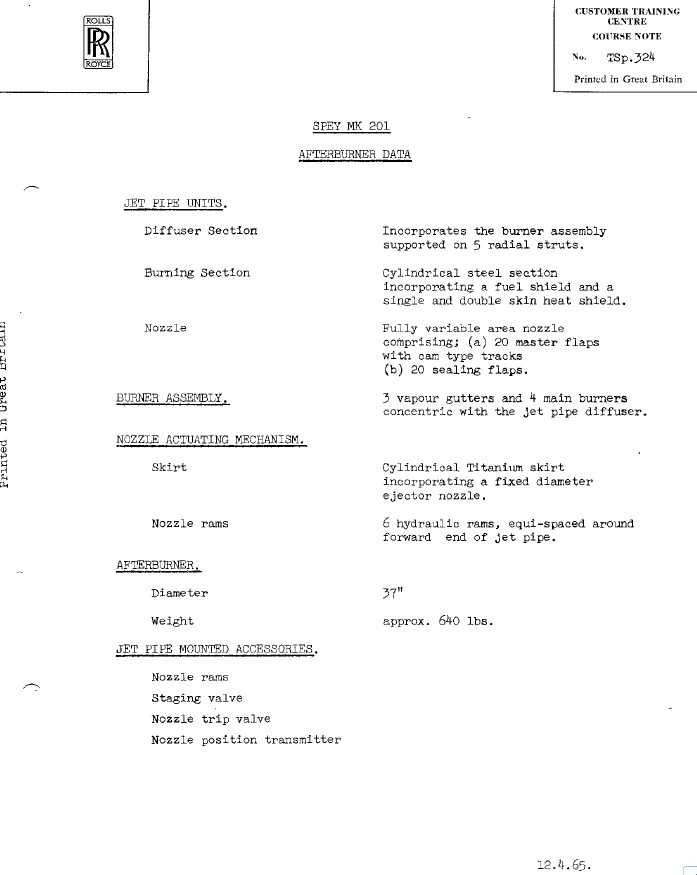 串回来再说点斯贝:罗罗的加力燃烧室体系(非适配某一具体机型的加力燃烧室)开发超过15年,试验时间超过1.9万小时,所以很是有些东西。比如: 1、加力比大:最大起飞推力(不开加力,持续15分钟)12550磅,开加力20985磅,加力比67%。 2、加力比可调:开发了新型稳定器,海平面状态下,加力比可以在12%~65%之间调节。 3、重量代价不低:加力燃烧室筒体778磅,占全重3635磅的21.4%,而加力燃烧控制器168磅占全加力系统(778+168=946磅)的17.8%。据称斯贝的发控是液压机电式的,那么哪怕改成模拟电路式的,也能节省相当重量。 |