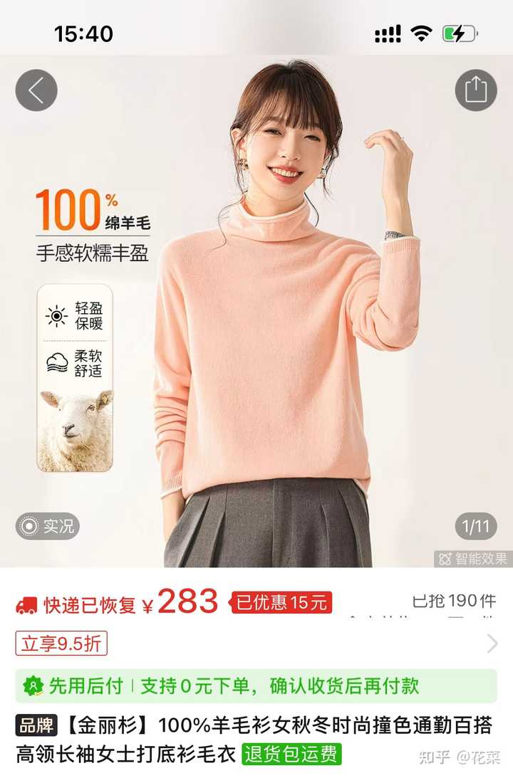 羊毛高领打底衫两件,袖子和侧身都是无缝的,不扎可以贴身穿。正在帮同事蹲,受我影响77块她嫌贵,我只能每天看一下价格了。金丽杉的厂家是帕罗,帕罗有二十多年了,做羊绒衫的,我在淘宝花了800多代购过,也有过爱慕虚荣的时候。 |