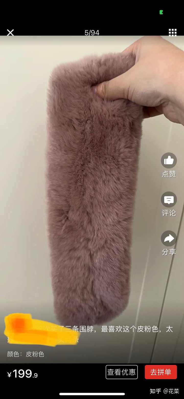 更新便宜货 双面獭兔毛围脖,35元,不知道皮子碎不碎,好像很细碎也能拼接缝制成一个“整的”。用我同事话,买个塑料围脖也要几十块,我在帮她蹲,最近没有她想要的颜色。 |