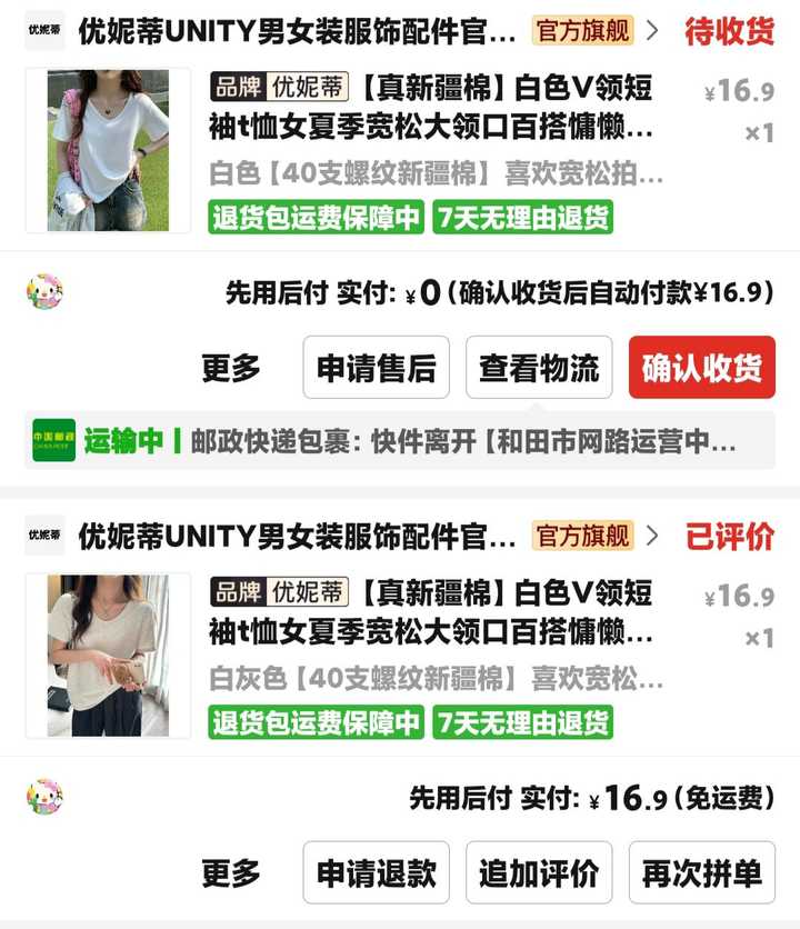 这个短袖真的是从新疆发货的,才10几块,质量超好!我觉得比我买的79的短袖穿着都舒服~忍不住要回购~ |