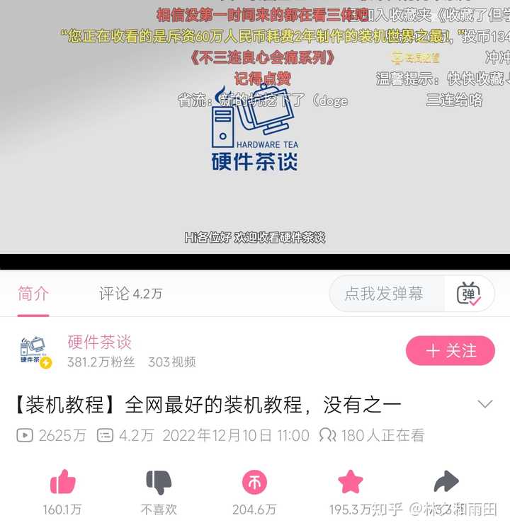 硬件茶谈发在B站上的这期视频《装机教程》,时长1小时16分钟,发布于2022年12月10日,马上3年了。今天是2025年11月27日,晚上十一点半还有180人正在观看。目前已有2625万播放量。题主觉得观看这个视频的男女比例是多少呢? |