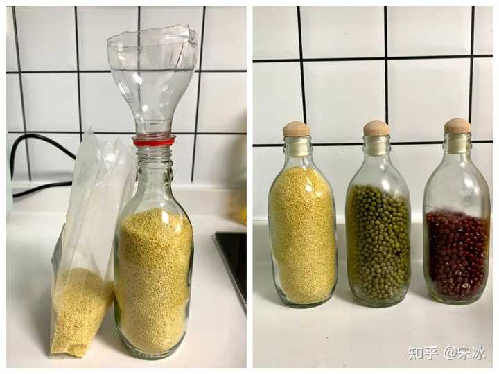 图源小红书,来源见账号 39、塑料拖鞋一人备两双,一双穿平时穿一双淋浴间穿,每天洗澡时轮换,鞋底永远是比较干净的,打扫卫生不用另外刷拖鞋。 40、喝完的象牌苏打水瓶是最适合装杂粮的容器了,网上有配套的塞子卖。倒进去也很容易,把塑料可乐瓶顶部剪下来当漏斗,一手扶着一手倒,一粒都不会洒出来~ |
