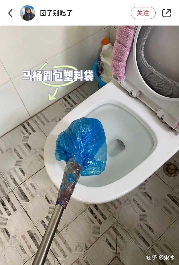 图源小红书,来源见账号 不过吸盘最好剪掉,否则娃娃拿不出来。 11、如果家里马桶堵了用搋子通不下去,不用着急叫人上门疏通,用几个塑料袋包住马桶刷,有条件可以用封箱带粘住,保证里面不进空气。 |