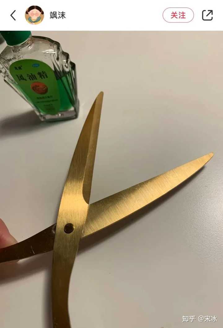 图源买家秀 35、剪刀上经常会残留一些胶,洗不干净也挂不掉,在上面滴风油精/防晒霜、免洗洗手液等含酒精成分的液体,静置半小时左右,再用纸巾一擦就能去除。 |