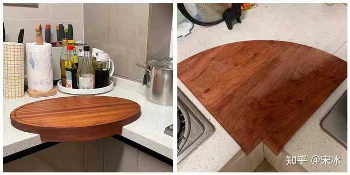图源小红书@vivianxiao 剩下的方便储存,下次用也是一样的操作~ 28、台面空间不够可以试试订制转角菜板,下面这两种我觉得都很实用,根据使用位置和习惯选。 |