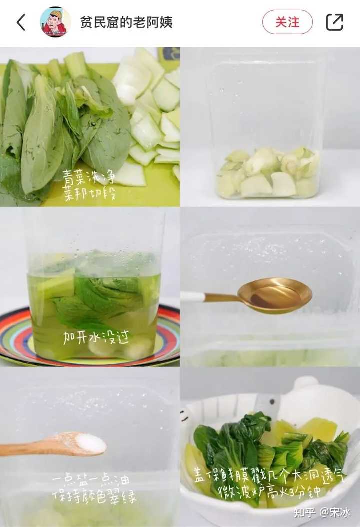 图源小红书,来源见账号 18、不用开火的烫蔬菜大法:洗干净的蔬菜放进碗里,加开水没过菜叶,微波炉高火叮2-3分钟左右就熟了,拿出来水倒掉调料拌一拌就是中式沙拉,健康又方便~ |