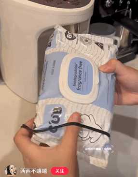 图源小红书@四叶妈妈的宝藏 2、抽厨房湿巾、湿厕纸的时候,经常容易一下子带出两三张对吧?可以在一边或两边都绑上皮筋,这样抽的时候摩擦力变大,一次一张就没问题了。 |