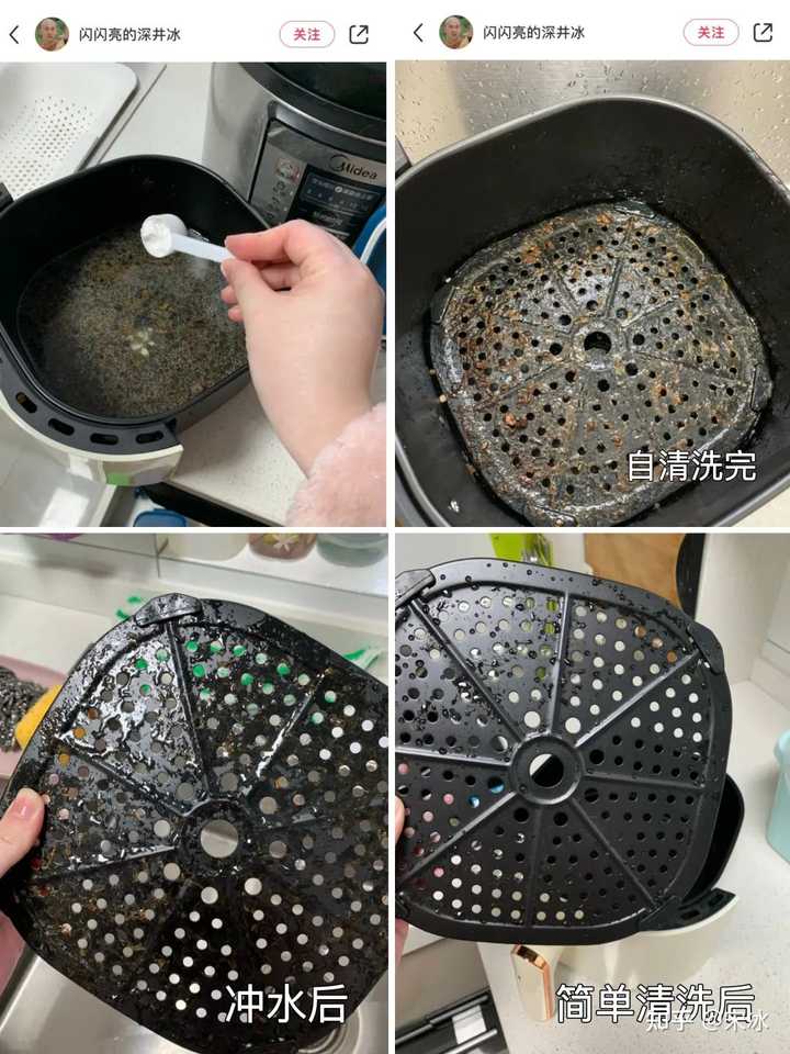 图源小红书,来源见账号 24、用空气炸锅做个大菜,底部难免留下黏腻的油渍,直接用海绵洗海绵多半就废了,不如先给它来个自清洗:加入没过滤网的水,再加一两勺小苏打,然后180℃加热5分钟,拿出来之后就很好洗啦。 |