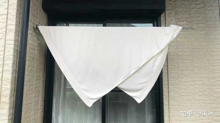 图源小红书@难得清欢 4、晾晒床单、被套、毛毯这些的大件可以用三角晾晒法,不仅通风更好,水也会集中在角的部分,比平着晒更容易干~ |